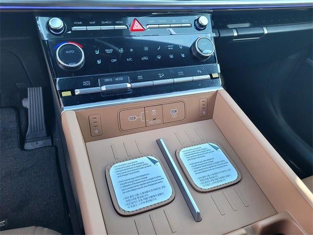 - Radio: AM/FM/HD Bose Premium Audio System -inc: 12 speakers including subwoofer, external amplifier, 12.3" wide touchscreen, wireless Apple CarPlay and Android Auto, Bluetooth® hands-free w/wireless audio streaming, dynamic voice recognition, USB connectivity, SiriusXM, wifi hotspot, Blue Link connected car system, navigation system including traffic flow w/incident data via HD Radio (HERE), OTA updates and rear seat quiet mode