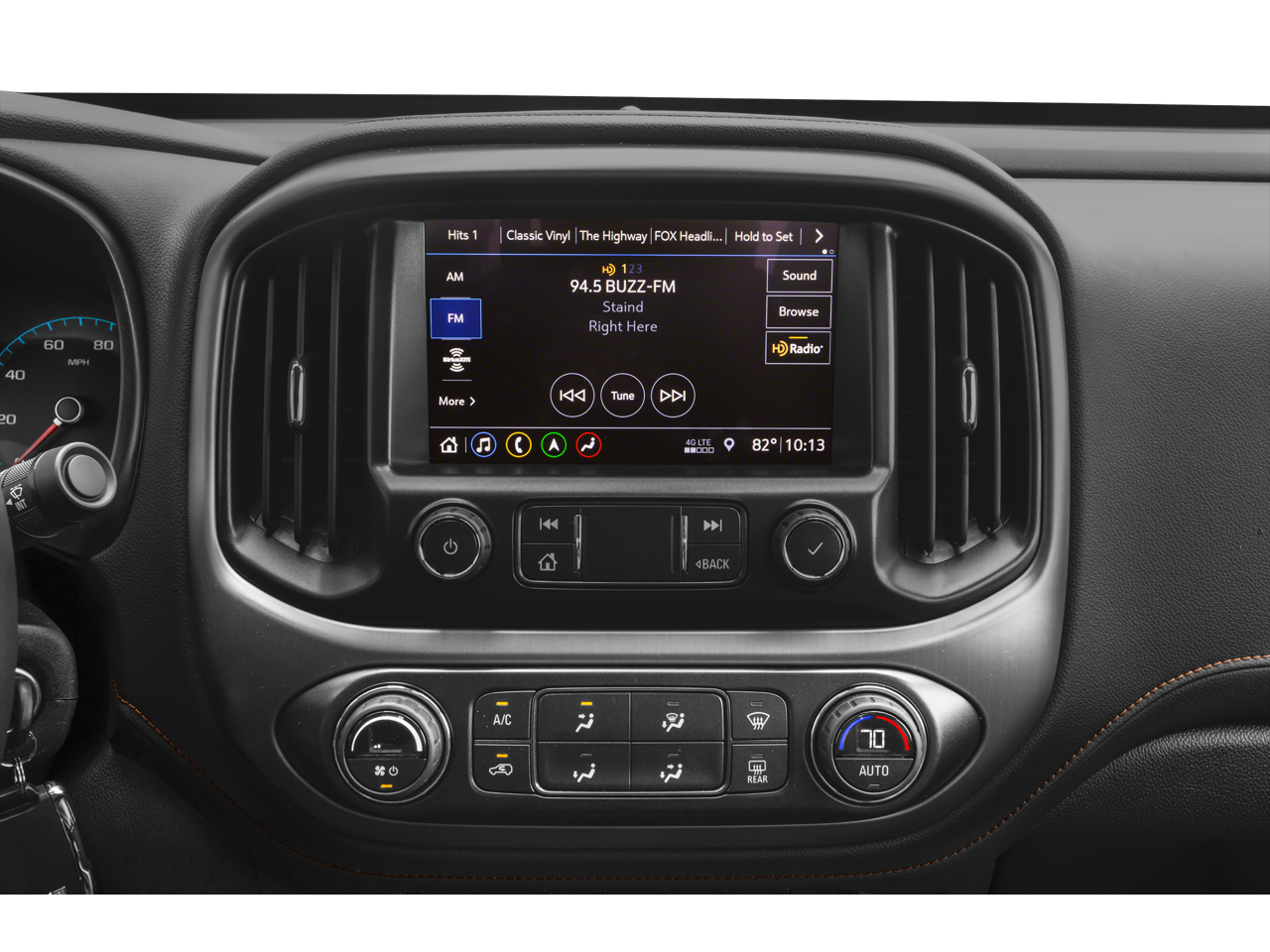 - Audio system, 8" diagonal GMC Infotainment System includes multi-touch display, AM/FM stereo, Bluetooth® streaming audio for music and most phones, Android Auto and Apple CarPlay capability for compatible phones, advanced voice recognition, in-vehicle apps, personalized profiles for infotainment and vehicle settings (Included and only available with (HVD) Leather-appointed front seats.)