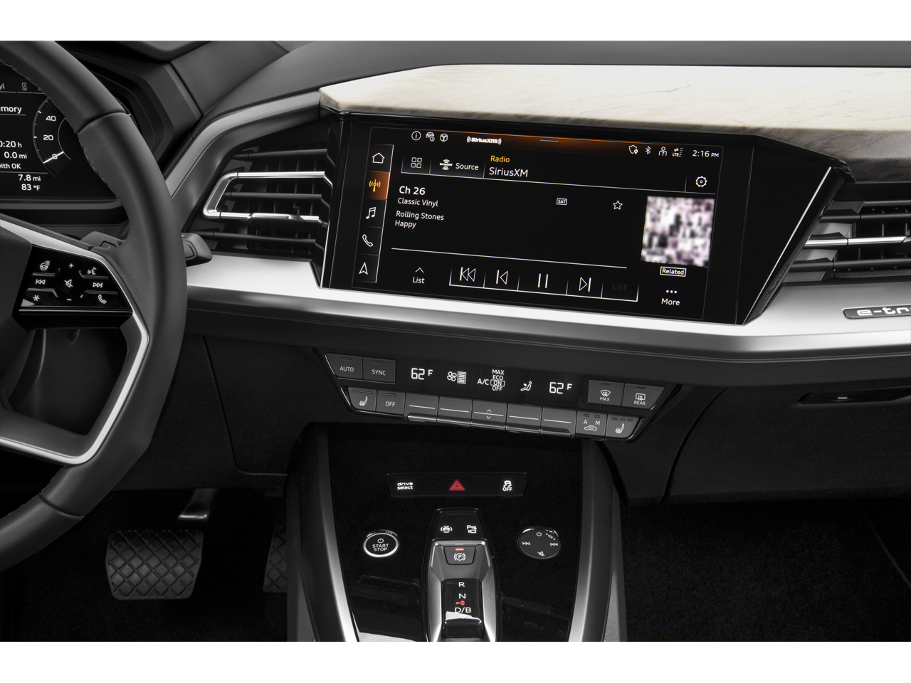 - Radio: Audi Sound System -inc: Audi smartphone interface w/wireless Apple CarPlay and Android Auto, Bluetooth® w/audio streaming, MMI touch display w/11.6" touchscreen and 12V socket w/2x USB-C charge ports